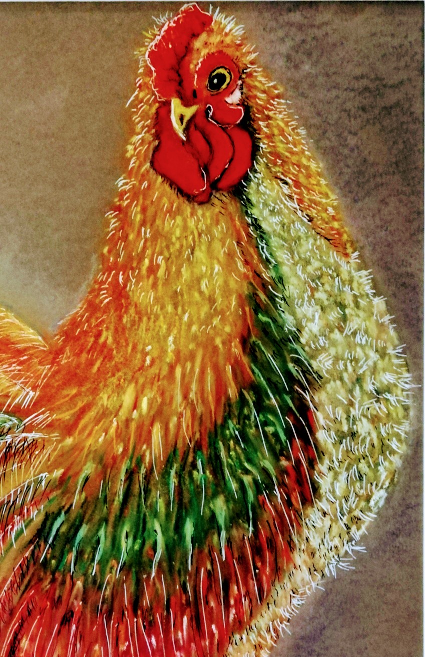 Original Artwork in mixed media of a glorious festive fowl. She would look fab on a kitchen wall.