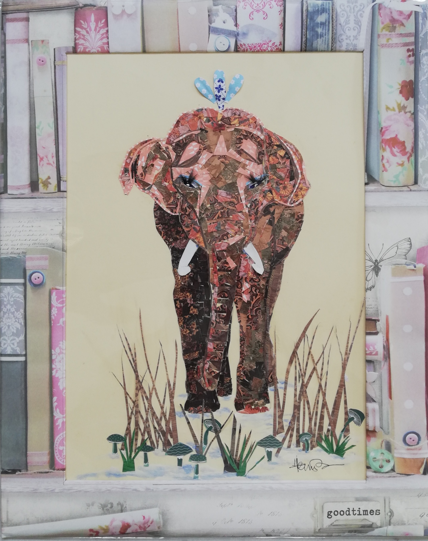 Elephant collage Size 28.5 x 41 cm Mounted 41 x 51cm