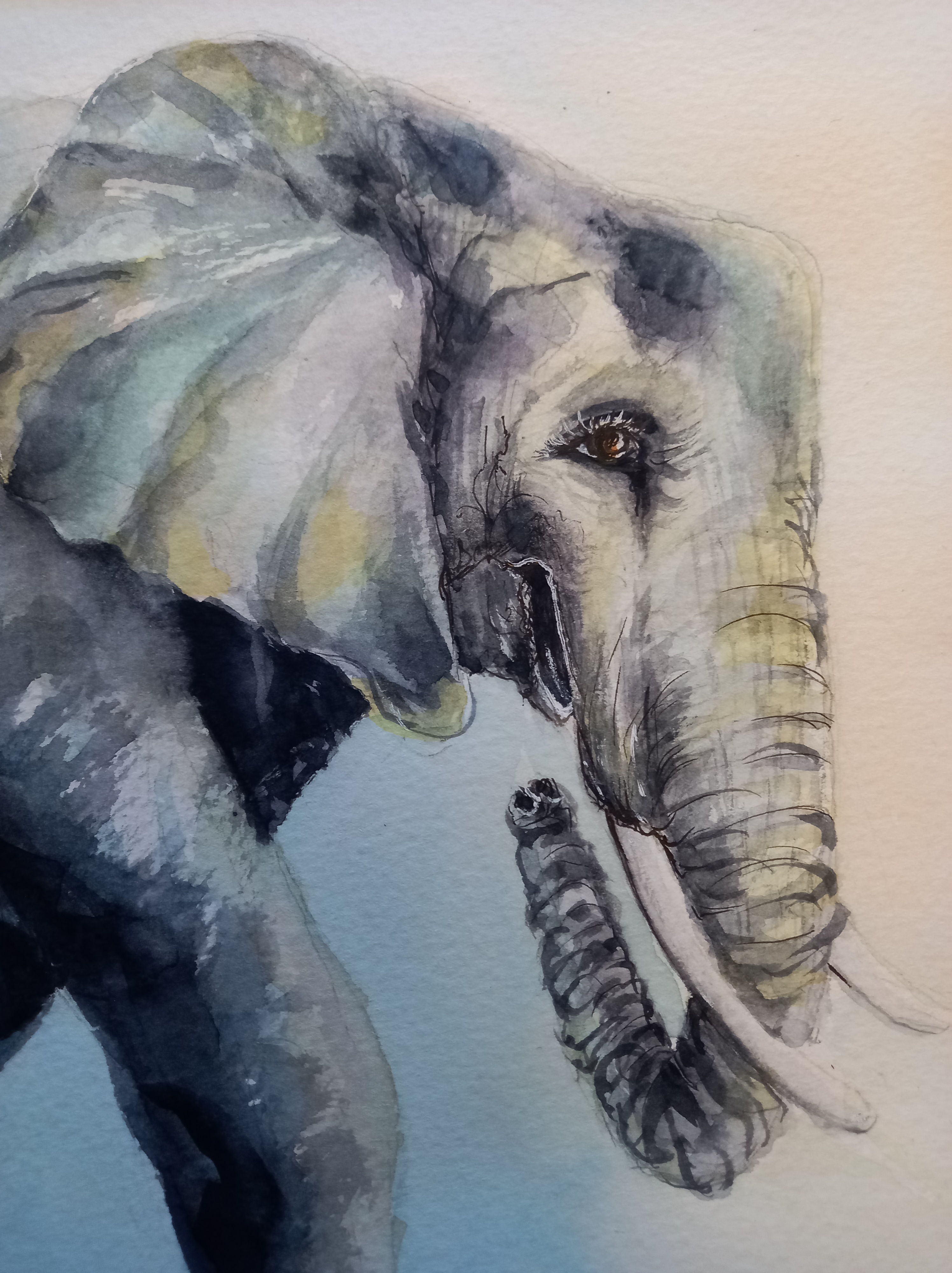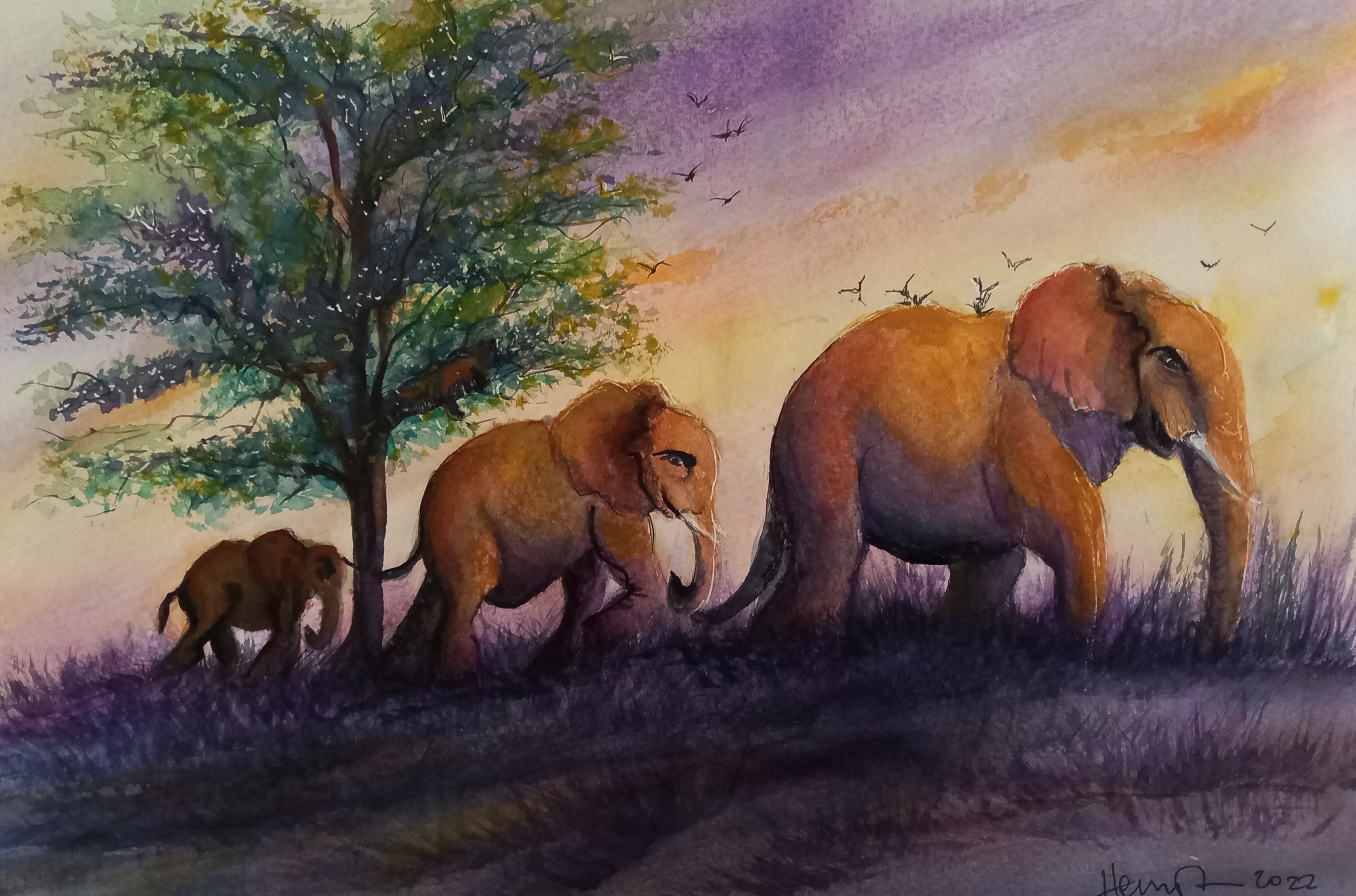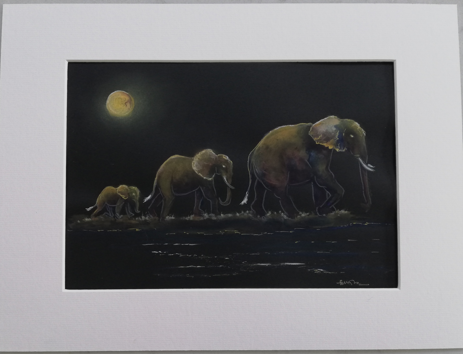 I love elephants. I love what they represent. Simply majestic. Earthy colours in resplendent watercolour. Mounted and FRAMED overall size bet A4 and A3.