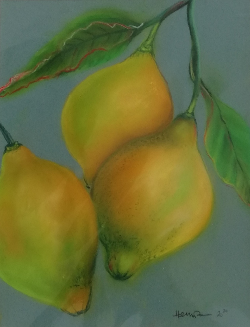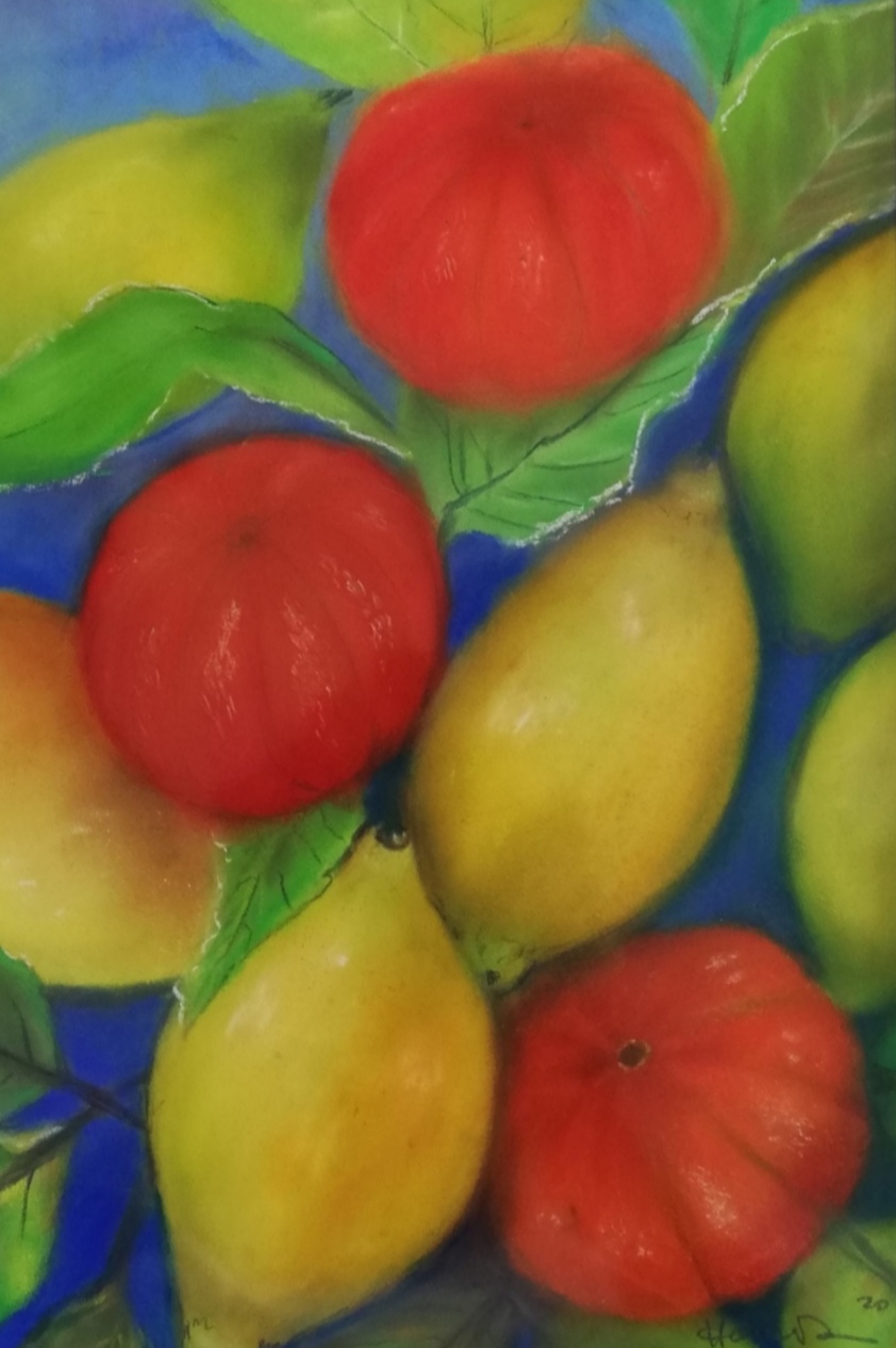 UNAVAILABLE Soft pastels lemons, mandarins Size 20 x 29 cm Mounted 31 x 41 cm