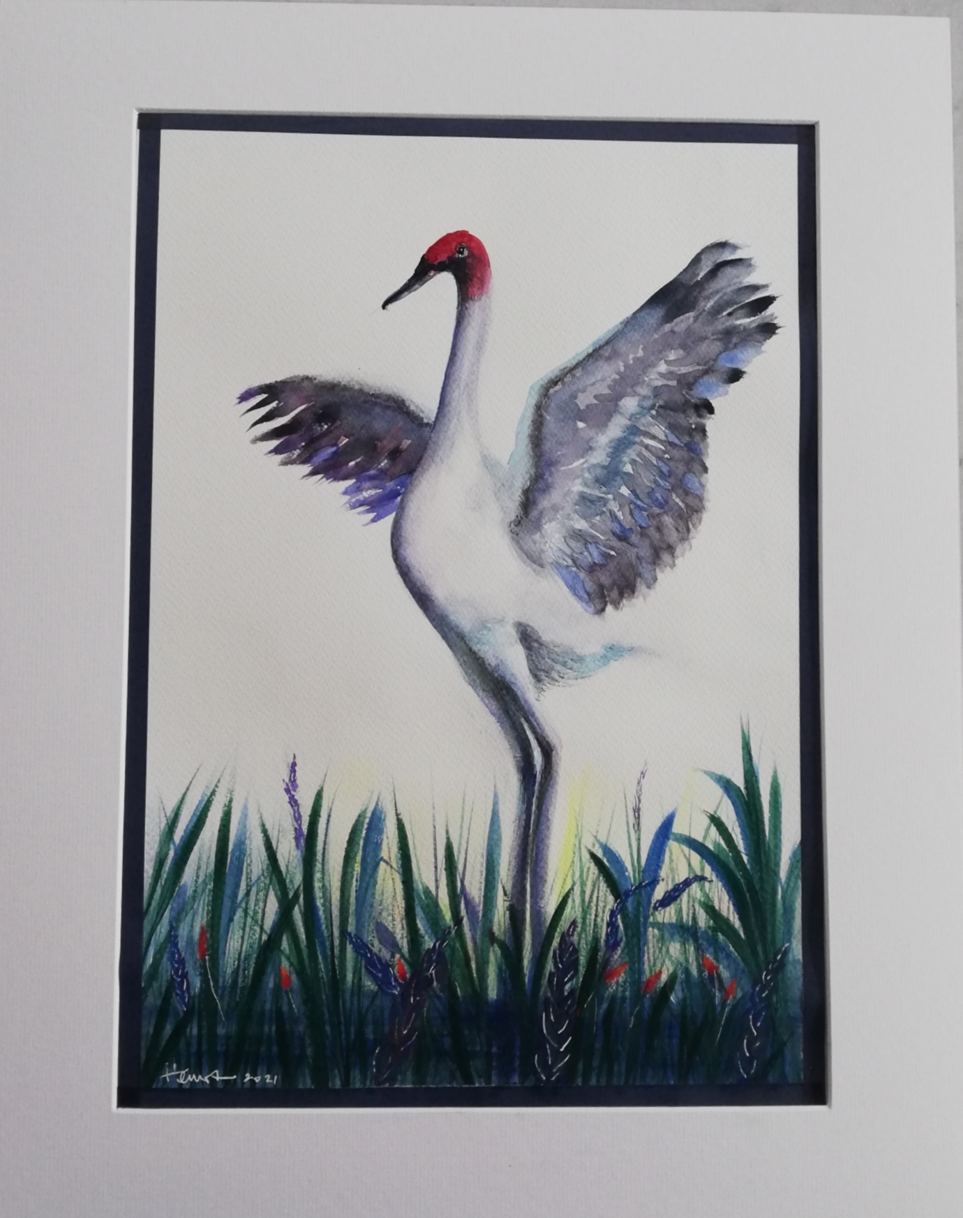 Original watercolour of bird, beautiful and free Size 28.5 x 41 cm Mounted 41 x 51 cm