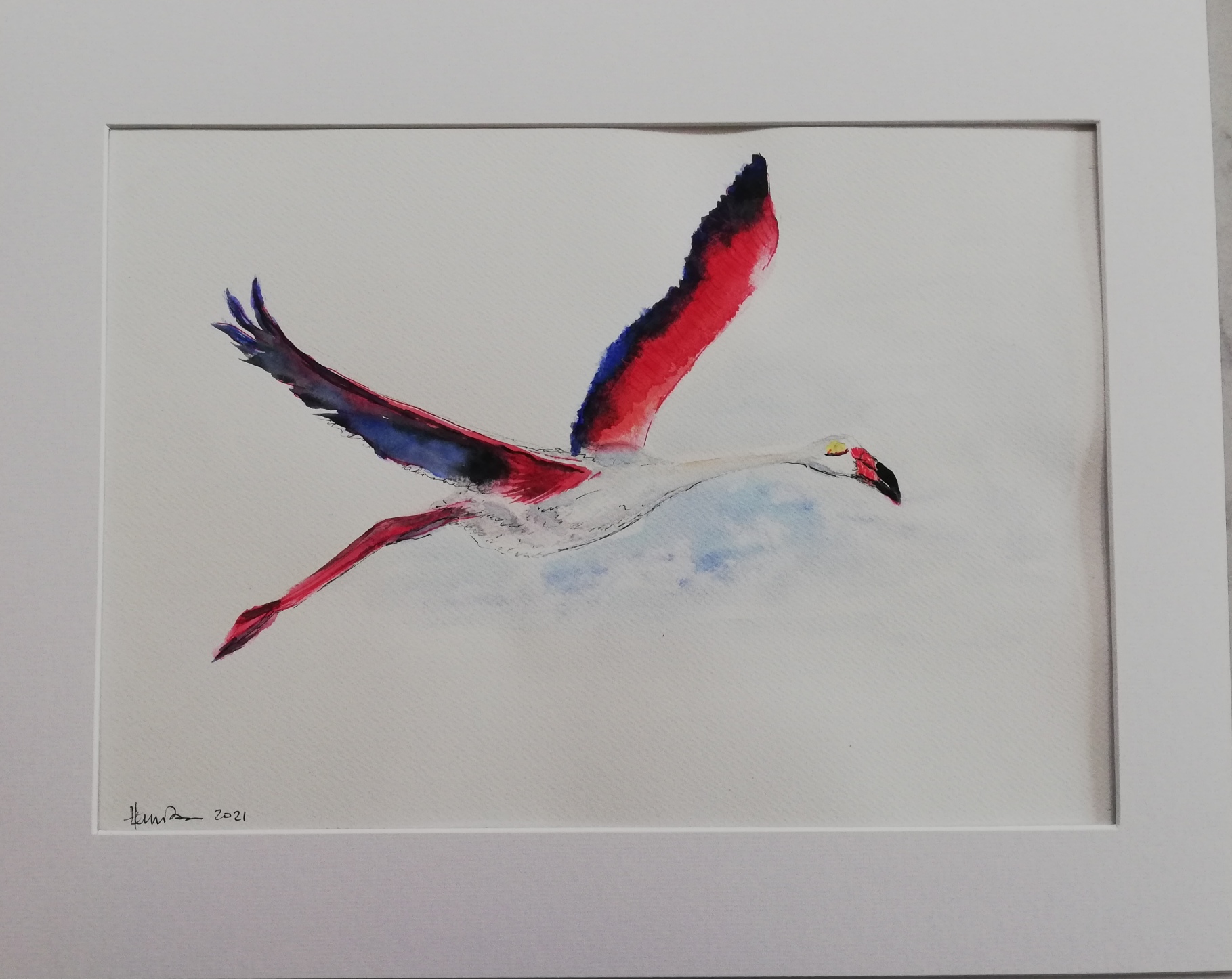 Watercolour flamingo Size 28.5 x 41 cm Mounted 41 x 51 cm