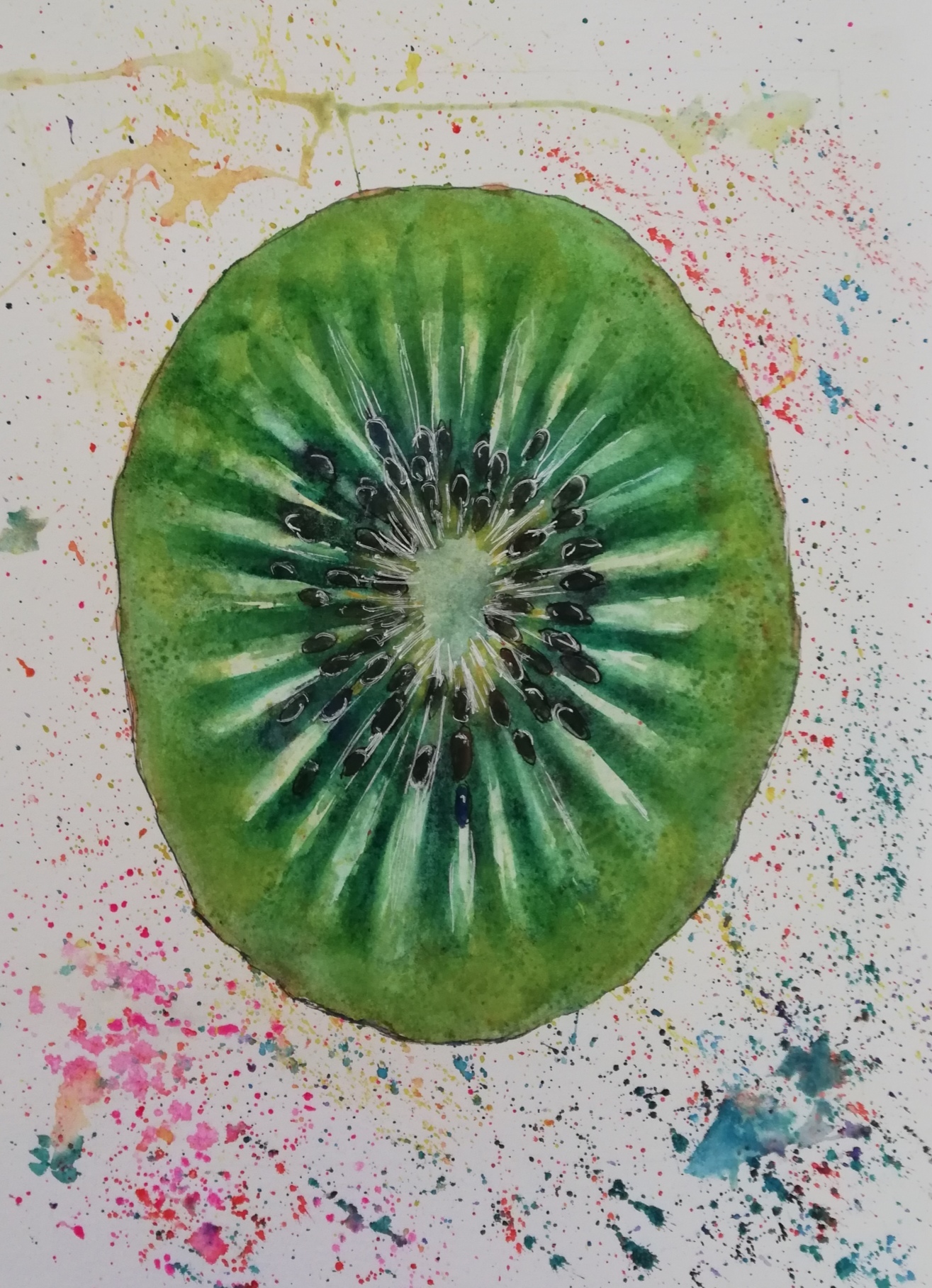 A zesty slice of refreshing KIWI Watercolour Size A4 Mounted