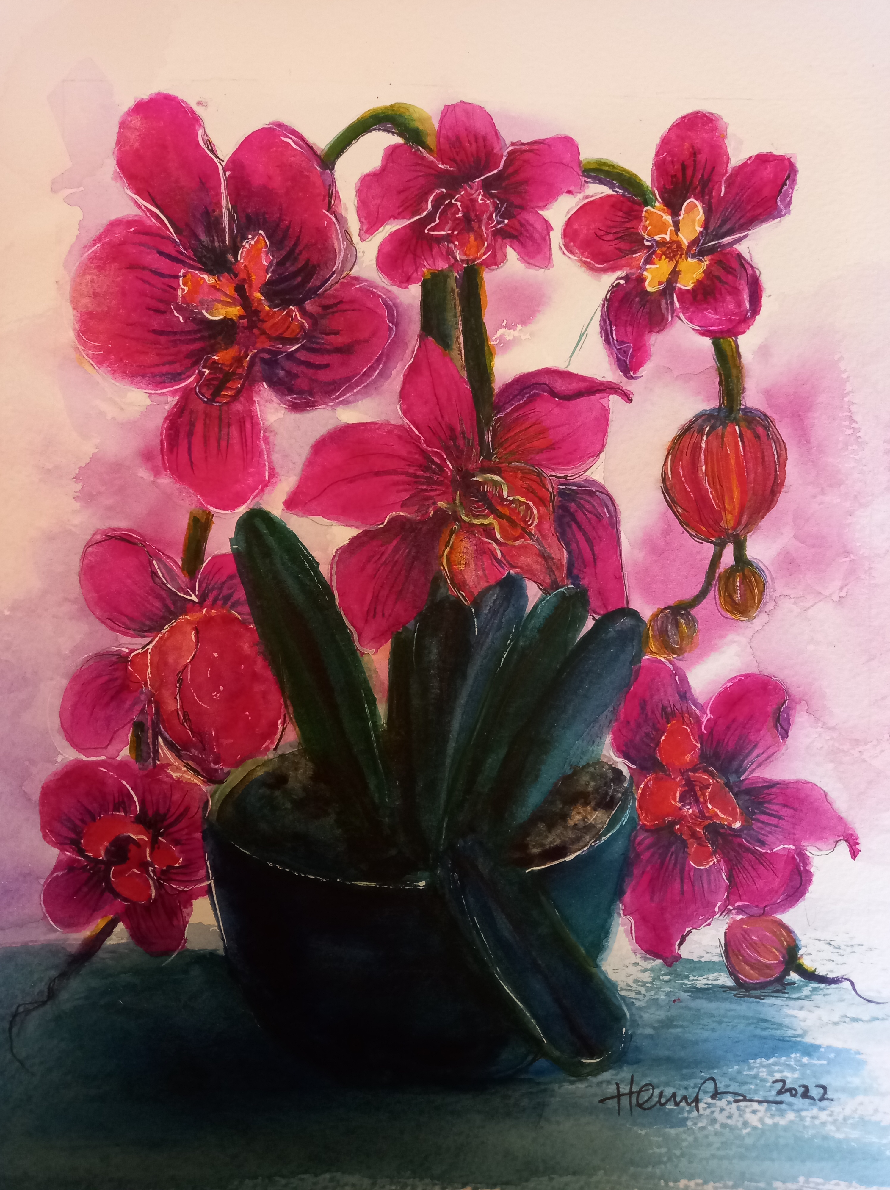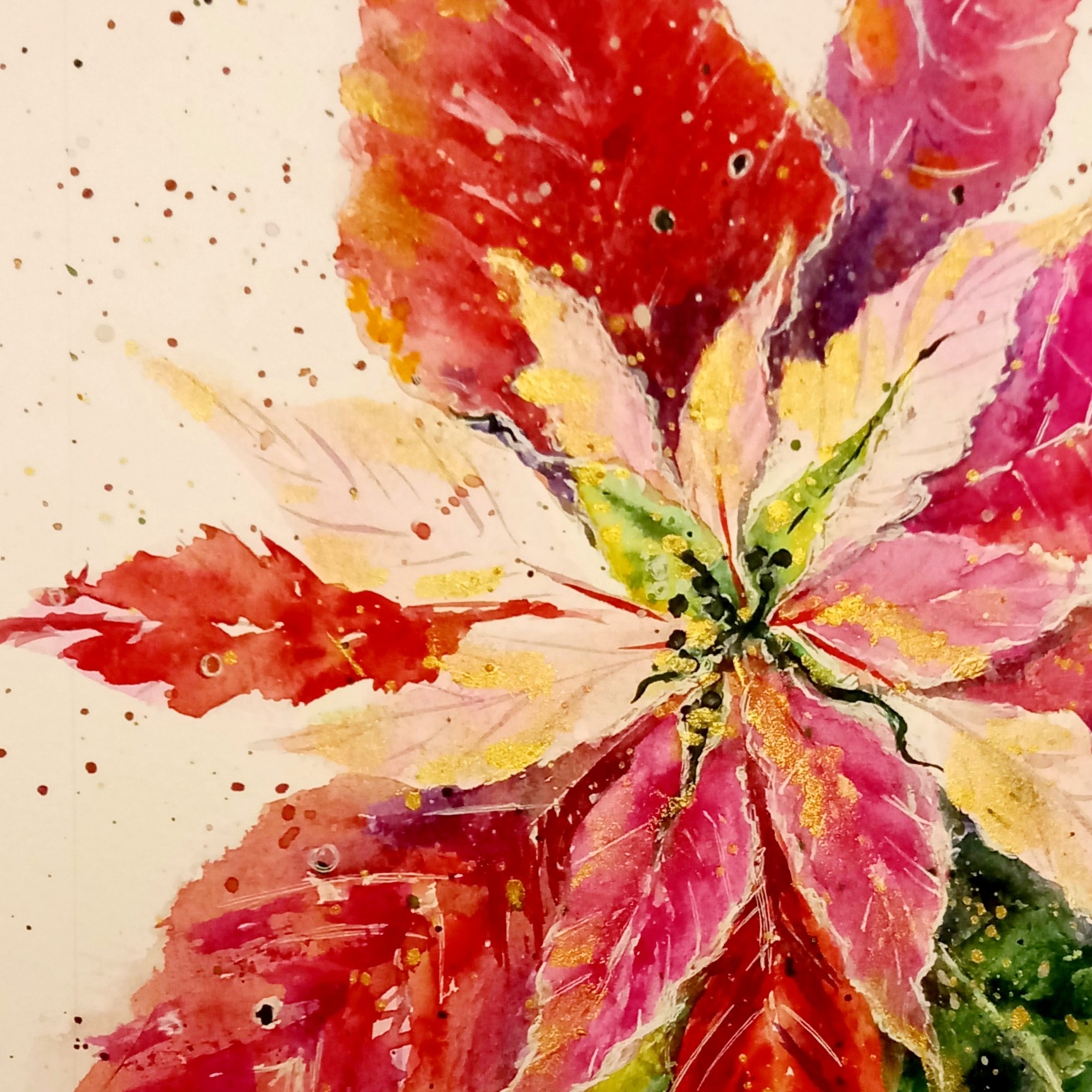 A joy to paint. Watercolour in vibrant colours Approx size A4 Pointsettia is also available as a card