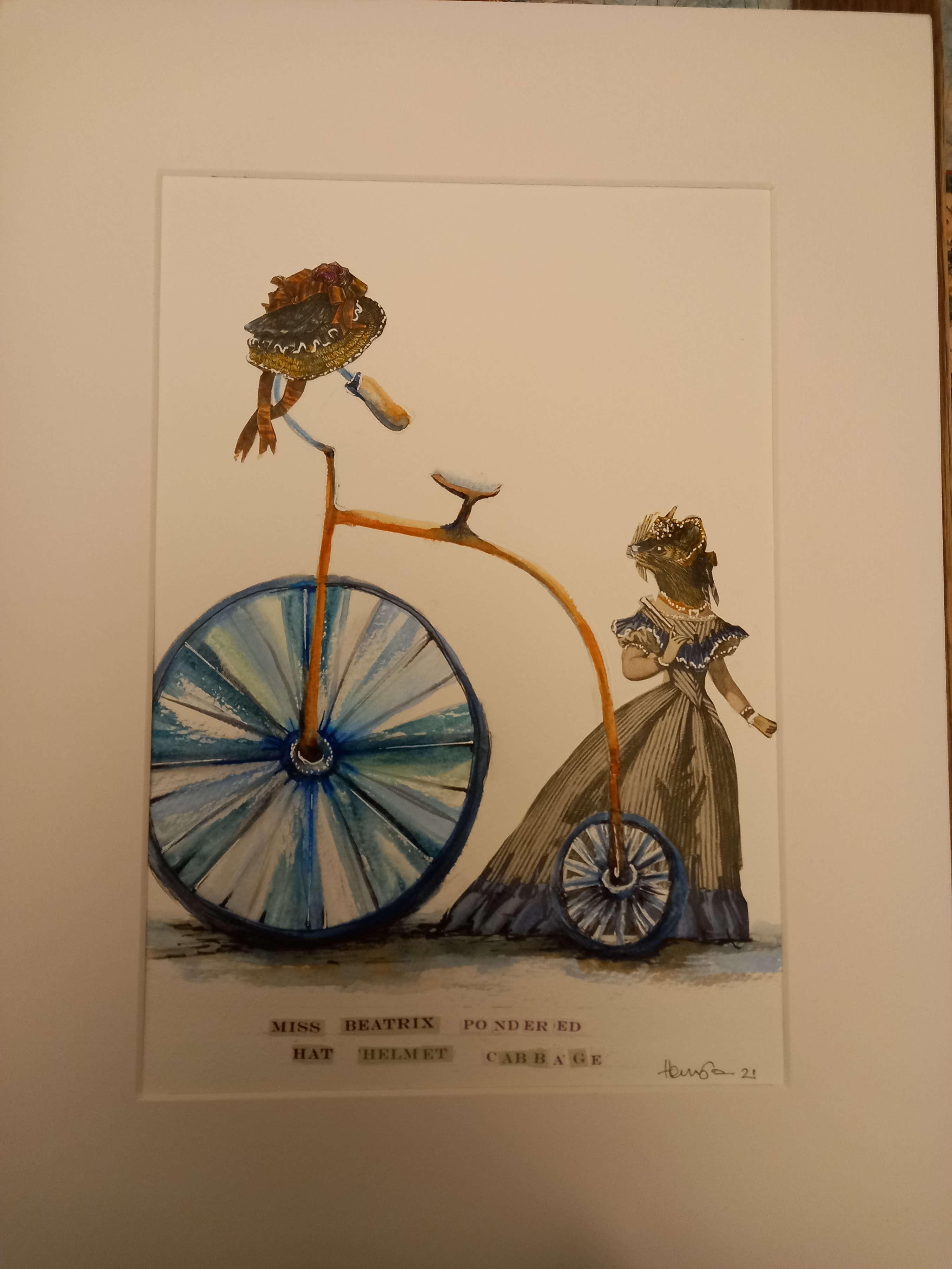 Original artwork Enjoying each others company. Watercolour, ink. Size 41 x 28.5cm Mounted 51 x 41 cm