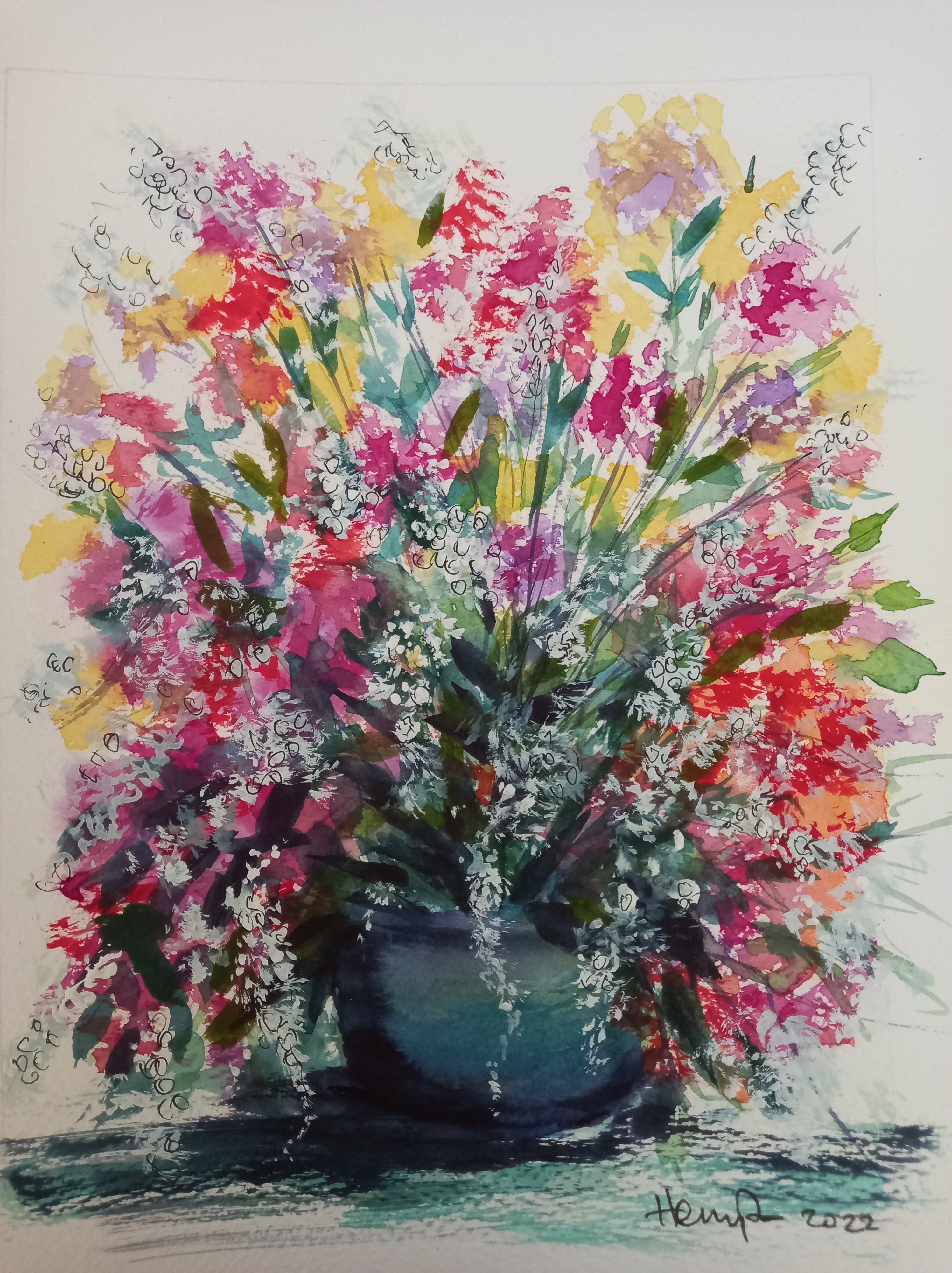 Vibrant watercolour A joy to paint Would look great and add to your space Size A4 Mounted
